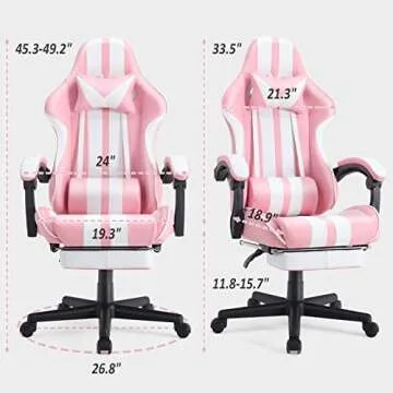 Show more The Ferghana Pink Gaming Chair seamlessly blends racing-style aesthetics with the utmost comfort, making it a perfect companion for both hardcore gamers and those who seek elegance in their workspace. Crafted from high-density molded foam sponge and durable, waterproof PU leather, this chair not only delivers visual appeal but ensures long-lasting comfort for hours of gaming or working. The chair’s design is versatile, allowing it to serve as an impressive accent piece in your room while meeting your functional needs.