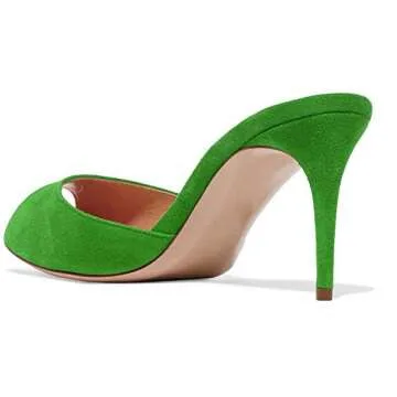 Fericzot High Heel Sandals Slip on Kitten Peep Toe Dress Pump Slides Backless Slingback Summer Slipper for Women Green 6.5M