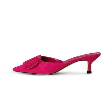 Show more Step into effortless elegance with our stunning one-of-a-kind Kitten Heel Mule Slippers. Designed for the fashion-forward individual who appreciates both style and comfort, these mules boast a sophisticated faux suede material that emulates luxury without compromising on affordability. With a measured heel height of 5.5cm, they provide just the right lift to enhance your silhouette without straining your feet.