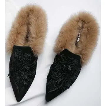 Show moreIntroducing the **Fericzot Slip On Loafers**: a harmony of style and comfort that is crafted for today's busy and fashion-conscious women. With their exquisite **embroidery design** and **plush lamb fur lining**, these backless mule slippers not only elevate your wardrobe but also offer unparalleled warmth and coziness, perfect for those chilly days. The **solid black color** ensures versatility, allowing you to pair them effortlessly with various outfits, whether you’re lounging at home, running errands, or enjoying a casual outing with friends.