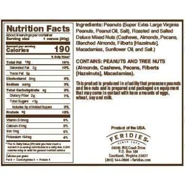Less| manufacturer | FERIDIES Salted Deluxe Mixed Nuts - 9oz Vacuum Sealed Tin |