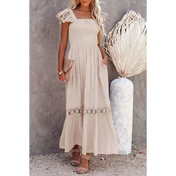 Unlike many competitors, the Ferlema Maxi Dress not only offers a wide range of size options but also emphasizes comfort with its lightweight, breathable materials and thoughtful design. While other brands may compromise on style for practicality, our dress harmoniously blends both, ensuring you feel confident in any setting. The unique design elements such as the crochet lace and smocked bodice give it a distinctive charm that sets it apart from other maxi dresses on the market.