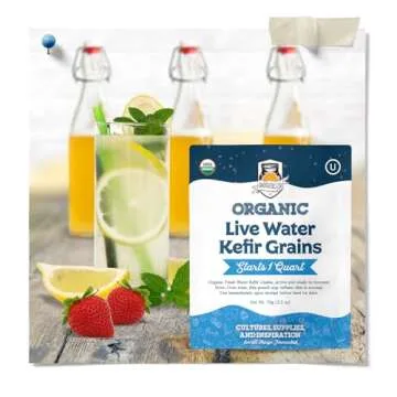 Show more Discover the magic of fermentation with Fermentaholics ORGANIC Water Kefir Grains, your ultimate starter culture for crafting refreshing, probiotic-rich water kefir right in the comfort of your home. These USDA Certified Organic grains are not just a product; they’re a gateway to a healthier lifestyle, offering you the chance to brew a full quart of delicious water kefir with minimal effort. Grown in our fully licensed lab, our kefir grains prioritize quality and purity, promising a delightful fermentation experience with each use.