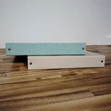 Fernweh4u Premier Bookcloth 3 Ring Binder 10.25" X 11.5 (2 Pack) - Cream Tan and Aqua Blue Colors - Perfect for Classroom and Business Work and Organization