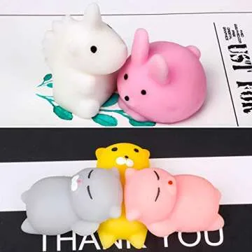 Show moreIntroducing the FEROXO Squishy Toys Party Favors for Kids – a delightful collection of 30 mini mochi squishies that will charm children and collectors alike! This vibrant assortment encompasses all your kids' favorite animals, including adorable unicorns, whimsical bears, cute cats, and jolly bunnies. Each squishy is individually wrapped and crafted from high-quality silicone material, ensuring a soft, squeezable experience. Perfectly sized for little hands, these squishies are not just fun to play with; they evoke joy and nostalgia with their cute aesthetics. Ideal for party favors, classroom rewards, or simply as stress-relief companions, these squishy toys bring smiles wherever they go! With a neutral smell and easy maintenance, these toys are as practical as they are fun.