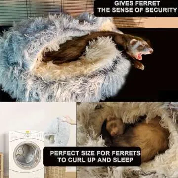 Not only is the soft and plush texture irresistible for your ferrets, but the easy maintenance feature also makes it a practical choice. You don’t need to worry about fussing with zippers; simply toss the entire bed into your washing machine on a gentle cycle, and voila! Your pet's bed will look as good as new. However, to avoid matting and maintain its durability, it’s best to dry the bed in the dryer on low heat after washing. The delightful design, coupled with its comforting properties, makes it a must-have for any ferret owner.