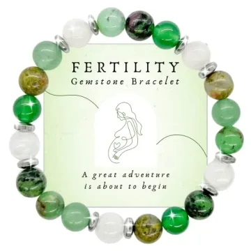 Show more Introducing our exquisite Fertility Bracelets for Women, a symbolic accessory meticulously designed for those embarking on the heartfelt journey of fertility. Each bracelet is crafted from 100% natural gems and crystals such as Ruby Zoisite, Green Aventurine, Moonstone, Green Jade, Chrysoprase, and Unakite. These gemstones are chosen not only for their beauty but also for their unique properties that support emotional well-being, helping to soothe and balance energy during this significant phase in life. Wearing this bracelet isn’t just about style; it’s about embracing hope and healing as you navigate your fertility journey.