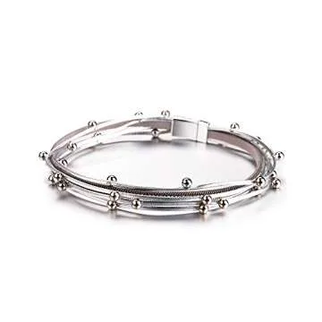 Fesciory Leather Wrap Bracelets for Women, Boho Leopard Multi-Layer Crystal Beads Cuff Bracelet Jewelry (Silver Beads)