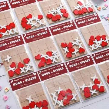 FestalMart Valentines Day Gifts for Kids-12 Pack Valentines Cards with Wooden Tic Tac Toe - Valentine Gift Kids Classroom Exchange Cards for Toddlers Boys Girls School Party Favors