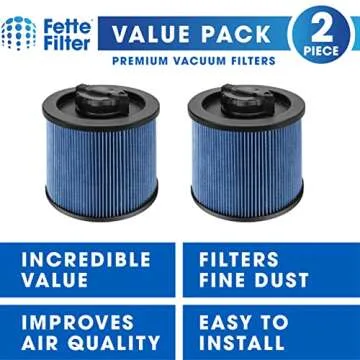 Fette Filter - DXVC4002 High Efficiency Cartridge Filter Replacement Compatible with Compatible with DeWalt DXV04T, DXV05P, DXV05S, DXV08S, DXV06G 4 Gallon Wet/Dry Vacuum Cleaners - Pack of 2