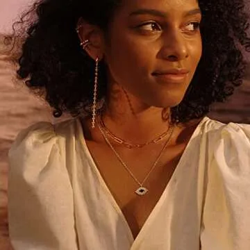Fettero Pendant Necklace 14K Gold Plated Evil Eye Pendant Dainty Chain Necklace for Women Layering Necklaces Good Luck Jewelry Gifts