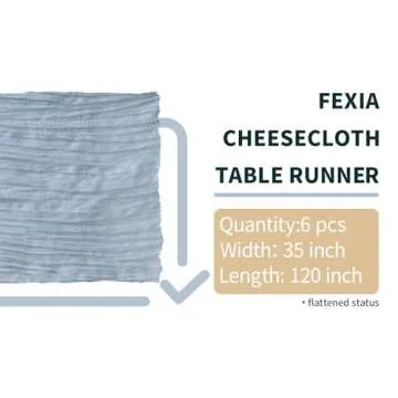 FEXIA 6 Pack Dusty Blue Table Runner 35x120 Inches Gauze Table Runner for Bridal Shower Wedding Party First Communion Centerpiece Engagement Boho Table Decoration (Dusty Blue)