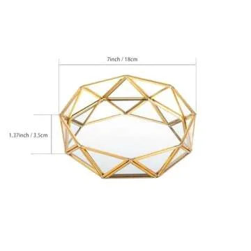 Show more This stunning Clear Glass Perfume Tray redefines elegance and functionality in your home décor. Crafted from premium quality clear glass with exquisite golden edges, this tray not only serves its purpose but does so with charm and style. With a diameter of 7 inches and a height of 1.37 inches, it lies at the perfect size to fit comfortably on your dresser, entryway, or any table. Experience the perfect fusion of modern design and classic geometric shapes.