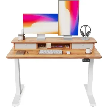 FEZIBO 48x24 Inch Electric Standing Desk with Double Drawer & Storage Shelf