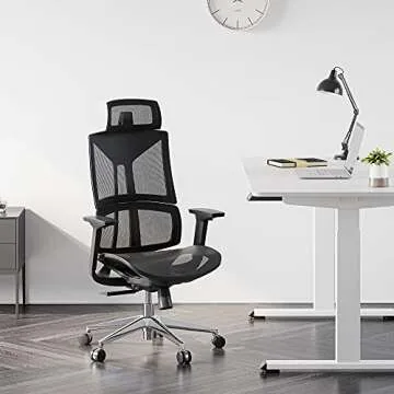 FEZIBO Ergonomic Chair Pro, Heavy Duty Black Office Chair with Wheels, Rolling Mesh Chair, Lumbar Support and 3D Metal Armrest, Home Office Chair Comfortable Seat Cushion and Rotatable Headrest