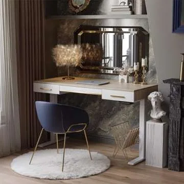 FEZIBO Mid Century Modern Standing Desk with 3 Drawers, 55 x 26 Inches Whole-Piece Sit Stand Up Desk for Home Office, White Top with White Frame (2 Packages)