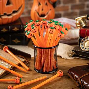 FFNIU 30 Pcs Halloween Pens, Cute Pumpkin Shape Skull Heads Pens, 0.5 MM Bulk Black Rollerball Pen for Halloween Thanksgiving Party Supplies School Office