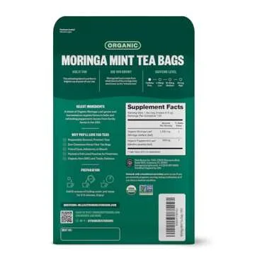 Show more Indulge in the invigorating blend of Moringa Mint Tea — a delightful beverage that combines the wholesome goodness of organic moringa sourced from India with refreshing peppermint from the United States. Each tea bag is meticulously packed to ensure that every sip is both flavorful and ethereal. What sets this tea apart is not only its taste but its commitment to the environment: the tea bags are crafted from eco-conscious Abacá Hemp Fiber Paper, ensuring no harmful dyes, adhesives, or chlorine bleach are present. You can enjoy your tea guilt-free.