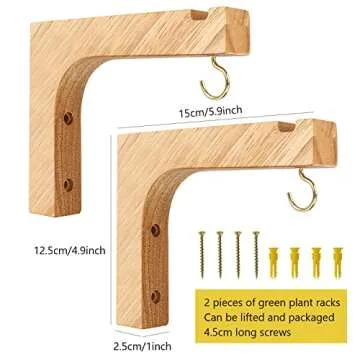 FGSAEOR Macrame Plant Hanger, Hanging Wall Planters for Indoor Plants, Wooden Hanging Basket Hooks for Outdoor Pots Wind Chime Flower Bracket Lanterns Patio Garden Decoration (2-Pack,5-Inch)