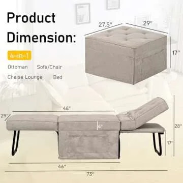 FHFO Sleeper Ottoman Bed Chair, 4 in 1 Folding Ottoman Chair Bed with Adjustable Backrest & Pillow, Multi-Function Futon Couch No Assembly for Small Space Living Room Apartment Office, 28"Width Beige
