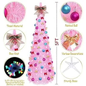 Equipped with a 5-meter light string featuring 30 color-changing LED balls, this tree offers 8 different lighting modes to perfectly match any atmosphere or theme. Whether you're creating a cozy ambiance or a vibrant celebration, the tree’s lights can adapt, making it a versatile decoration for any occasion. To enhance its beauty, it comes complete with a large decorative bow, 30 additional ornaments, and 24 smaller bows, ensuring your Christmas tree looks stunning and full.
