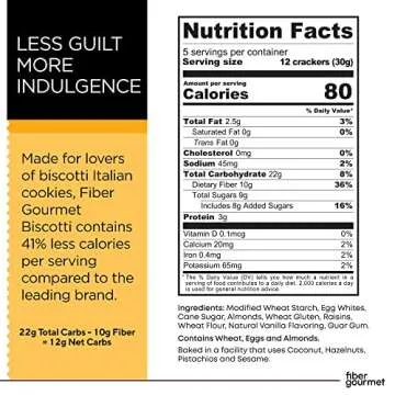 Fiber Gourmet Biscotti Bites, 3-Flavor Bundle Biscotti Cookies (Original Almond, Ginger Spice, Chocolaty Almond), Pack of 3 x 5.25 Ounces (149g)