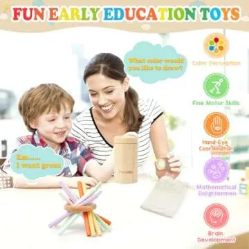 FICCURYS Montessori Toys for Toddlers 1-3,Fine Motor Skills Toys for Toddlers 1-3,Educational Toys for Baby 6-12 Months,Wooden Kids Sensory Sticks for Birthdays