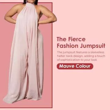 Fierce Fashion The Jumpsuit, Women Sleeveless Halter Neck Jumper, Trendy Wide Leg One Piece, Summer Romper for Women, (Mauve) (Mauve, Small)