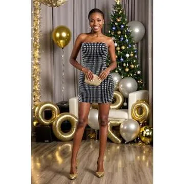 Figdaw Rhinestone Embellished Dress Birthday Sequin Cocktail Dresses for Women Sexy Club Wear Party Night,Black,XL,C7079