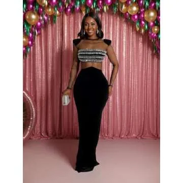 Figdaw Strapless Rhinestone Maxi Dress Sequin Dresses Sexy Evening Gowns for Women Formal Elegant 2025,Black,M,C6823