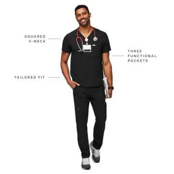 Introducing the FIGS Chisec Three-Pocket Scrub Top for Men, expertly crafted from our proprietary FIONx fabric to redefine your workwear experience. This scrub top in black is not just about style; it brings together unrivaled comfort and functionality. With the innovative Silvadur technology that offers superior odor protection, you can maintain fresh confidence throughout your shifts. Whether you're in a bustling hospital or a tranquil clinic, this scrub top will quickly become your go-to...