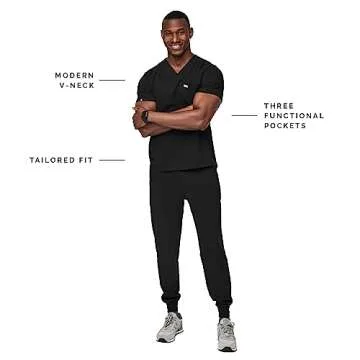 FIGS Leon Three-Pocket Scrub Top for Men - Black, S