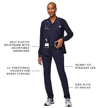 Introducing the FIGS YOLA Skinny Scrub Pants for Women in a sophisticated Navy shade – engineered to revolutionize your work attire with unmatched comfort and exceptional functionality. Crafted from the incredibly soft FIONx fabric, these scrub pants are designed to offer a perfect blend of performance and style. The half elastic waistband, complemented by an adjustable drawcord, allows for a personalized fit, ensuring you feel relaxed...
