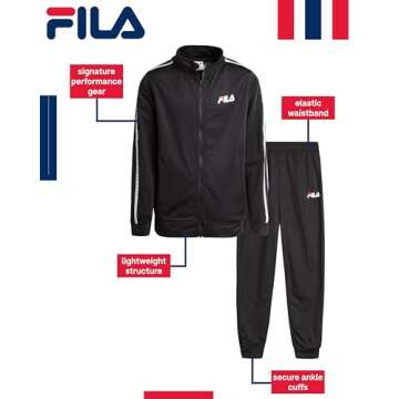 Fila Boys' Active Tracksuit Set - 2 Piece Performance Tricot Sweatshirt and Jogger Sweatpants - Activewear Set for Boys, 8-12