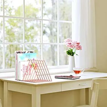 Files Folder Stand Desktop File Organizer, Triangle Wire Magazine Holder Book Shelf, 9 Slot File Sorter Eye-catching Decoration for Indoor Office Home, Photography props, Fashion in INS (Rose Gold)