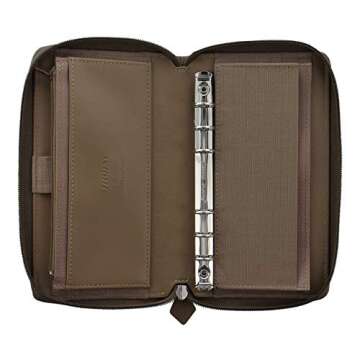 Filofax 2021 Saffiano Zip Fawn - Personal Compact, 6 Rings, Includes Week On 2 Pages Calendar Diary, Multilingual (C028759-21)