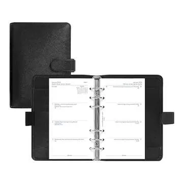 Filofax Saffiano Organizer, Personal Size, Black - Cross-Grain, Leather-Look, Six Rings, Week-to-View Calendar Diary, Multilingual, 2024 (C022470-24)
