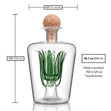 Final Touch Agave Tequila Decanter - 850ml Handmade Bottle with Natural Cork Stopper and Wide Spout for Smooth Pouring - Inspired by Agave Plant for Tequila Serving (TQ5301)