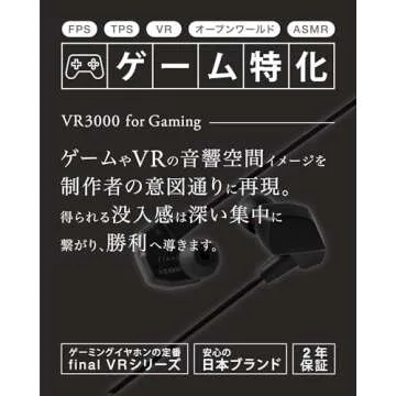 Show more Experience sound like never before with the VR3000 gaming earphones, a testament to Final's commitment to high-fidelity audio technology. These earphones have been meticulously engineered to deliver a spatial gaming sound that immerses you into expansive open-world games and virtual reality environments. With a remarkable 6mm high-precision dynamic driver, they reproduce audio with clarity and accuracy, ensuring you don't just hear game sounds but feel them. Whether it's the rustle of leaves or distant footfalls, every sound is rendered perfectly, enhancing your gaming experience.