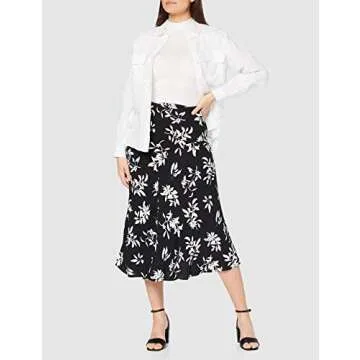 FIND Women's AN7260 Floral & Botanic midi skirt, Multicolour (Black/White), 14 (Manufacturer Size:L)