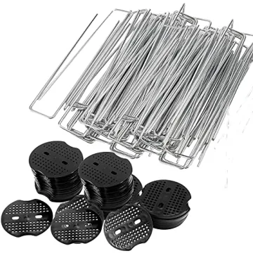 Show moreUnleash the potential of your garden with the Finderomend 100 Pack Landscape Staples, a reliable solution crafted for every gardening enthusiast. Each measure at approximately 6 inches and constructed from robust galvanized steel with a diameter of 0.12 inches, these staples are designed to anchor your landscape fabric securely, ensuring your weed barrier remains firmly in place. Included with the stakes are 100 plastic gaskets that provide an added layer of stability, making your weeding work not only effective but also easy!