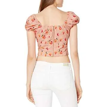 findersKEEPERS Women's Tutti Frutti Square Neck Short Puff Sleeve Cropped Bodice, Peach, XS