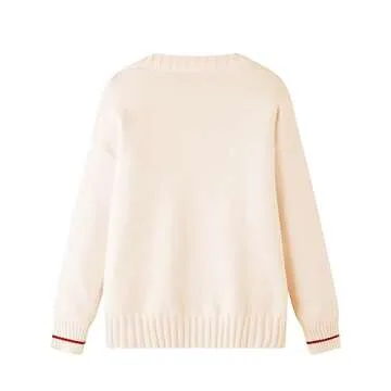 FindThy Women's Cute Cardigan Sweater Kawaii Love Heart Print Y2K Button Knitted Outerwear(0335-01BeigeNew-OneSize-LB)