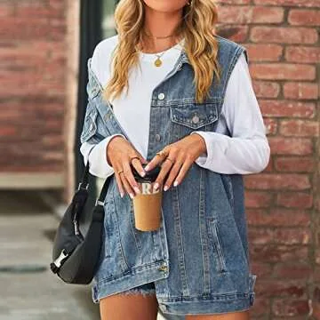 FindThy Women’s Vintage Denim Jean Vest Oversized Button Down Jean Waistcoat Gilet(1481-01Blue-M-LB)