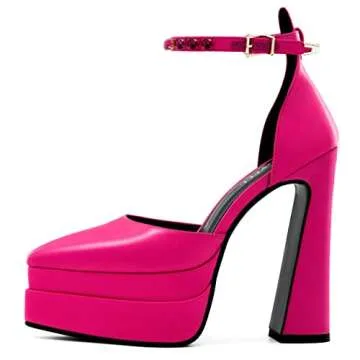 FINDVELL Chunky Platform Heels - Hot Pink Glamour