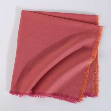 Show moreElevate your dining experience with the Fingercraft Cloth Napkins Cotton Set of 12, featuring an exquisite fringe design that merges functionality with a touch of elegance. Each napkin is intricately woven from **100% cotton twill**, showcasing a delightful blend of vibrant orange warp yarn and soft crystal pink weft yarn. This unique color combination not only adds warmth and joy to your dining table but also ensures durability and long-lasting use. Tailored for both casual and formal occasions, these napkins add a sophisticated flair to any setting, making them perfect for everyday meals, special gatherings, and upscale events.