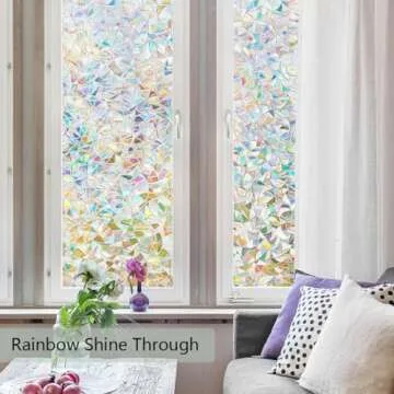 Show more Enhance your space's privacy and beauty with the top-rated Finnez Window Privacy Film. This innovative, static cling window film not only ensures your privacy but also allows natural light to filter in beautifully. Measuring a generous 17.5 x 78.7 inches, this 3D glass sticker is designed to fit a variety of glass surfaces including windows, sliding doors, and glass furniture. The film effectively blocks out strong sun glares while filtering out an impressive 96% of harmful UV rays, protecting your interiors from sun damage and adding a layer of comfort to your home or office environment.