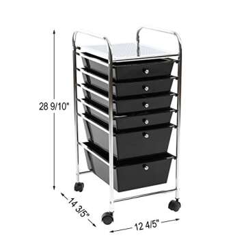 Show moreIntroducing the Finnhomy 6 Drawer Rolling Cart Organizer, a multi-functional storage solution expertly designed for home, office, school, and beauty salons. This versatile cart features a combination of four small drawers (11.25" x 14.37" x 2.36") and two large drawers (11.25" x 14.37" x 4.72"), ensuring that all your organizational needs are met, whether you’re storing supplies, tools, or everyday items. With an overall size of L12.8" x W14.6" x H28.9", this cart is compact yet spacious enough to hold everything you require without occupying too much space.
