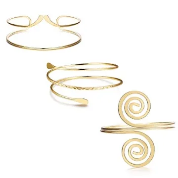 Show moreUnleash your inner fashionista with the FINREZIO 3Pcs Upper Arm Bracelet Set, a stunning collection of open cuff armlets designed to elevate any outfit. Crafted with care, this jewelry set showcases a variety of styles including a simple wire design and an enchanting swirl design, allowing you to express your unique taste effectively. Made from high-quality alloy and expertly plated in gold, silver, and rose gold finishes, these bracelets offer both charm and versatility, making them a must-have accessory for fashion-savvy individuals.
