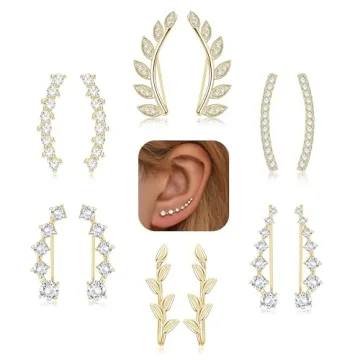 Show moreElevate your jewelry collection with the FINREZIO 6Pairs Ear Cuffs Climber Hoop Earring CZ Arrow Crawler Stud Earring Jacket for Women in Gold. This set is a dazzling array of designs, from geometric shapes to crystal embellishments, perfect for any occasion. Crafted from hypoallergenic copper and plated with platinum, these earrings are not only stylish but also safe for sensitive skin. The AAA+ cubic zirconia inlay catches the light beautifully, ensuring you stand out. With sizes ranging from 0.75 to 0.87 inches, they offer a comfortable fit for all ear types, making them a versatile addition to any wardrobe.